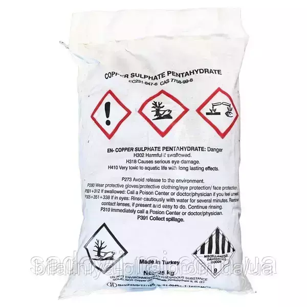 Зазначимо також, що сам собою купорос не токсичний і не горить. Однак якщо мідний купорос нагрівається, перебуваючи в ємності, він може вибухнути, тому при його зберіганні та роботі з ним потрібно бути обережним. Наша компанія постачає купорос у зручній упаковці – у пропіленових мішках по 25 кг.